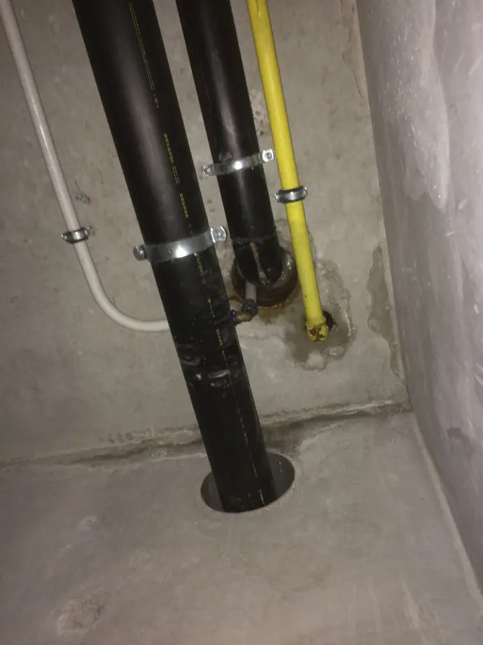 Uit deze leidingdoorvoer drupte er al maanden af en toe water.